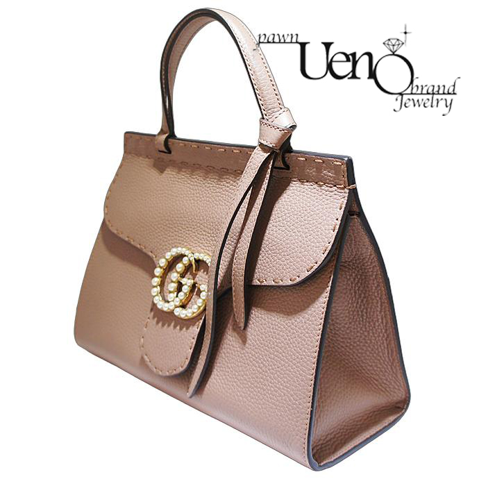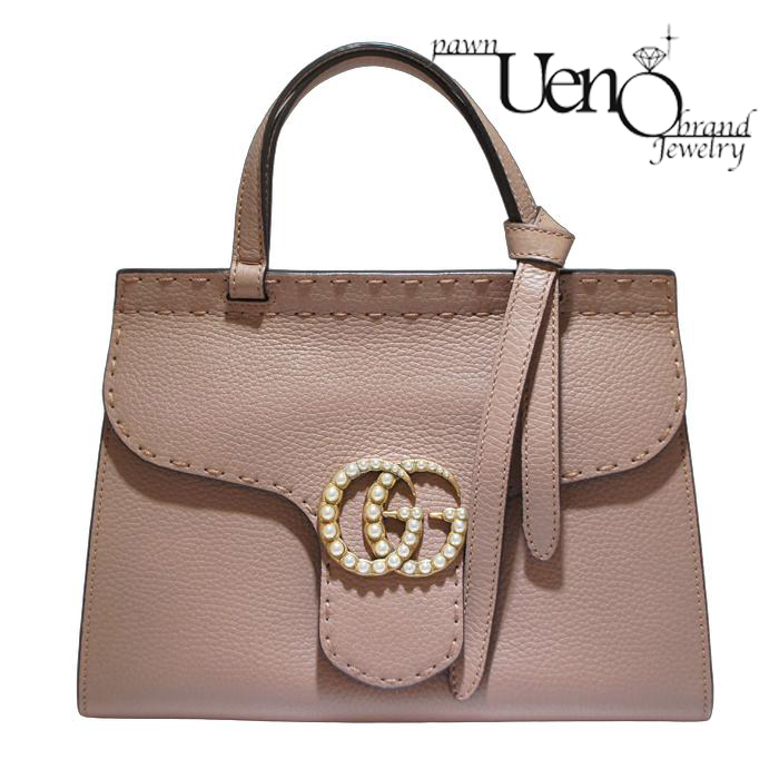 【GUCCI グッチ】GGマーモント トップハンドルバッグ 2WAY ショルダー付き (ピンクベージュ)