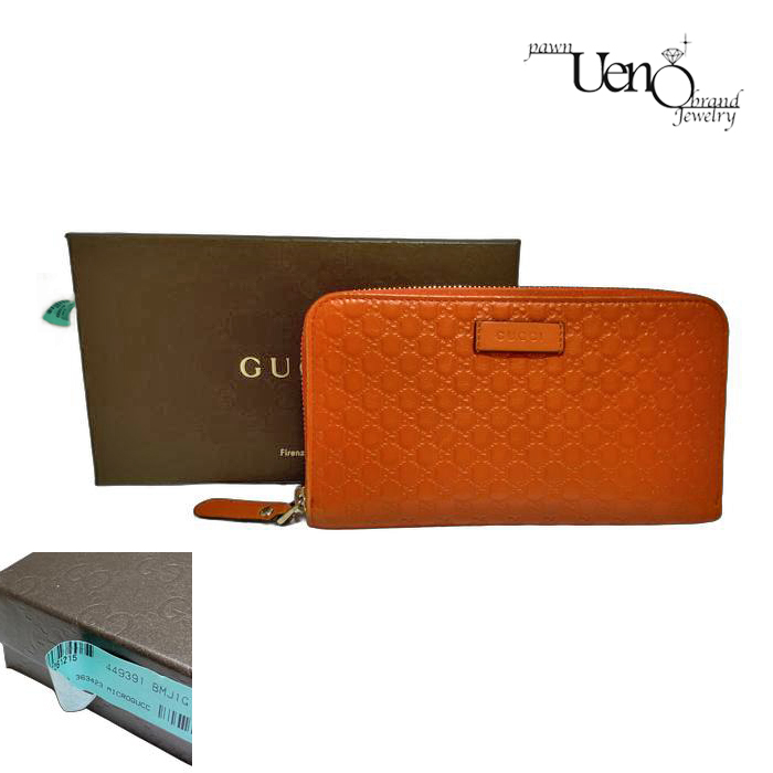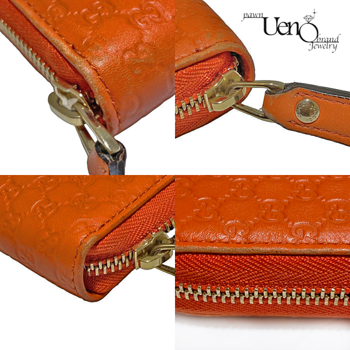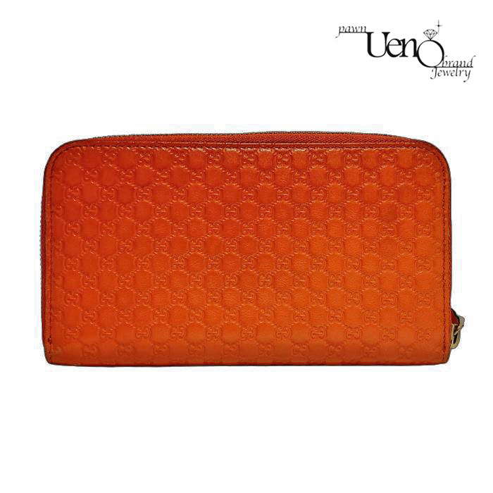 GUCCI グッチ マイクログッチ シマ ラウンドファスナー長財布(オレンジ)