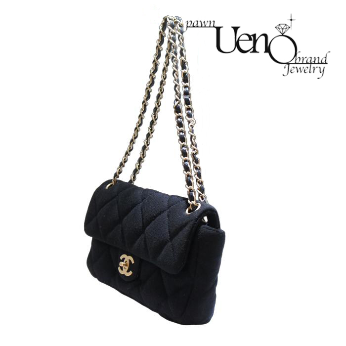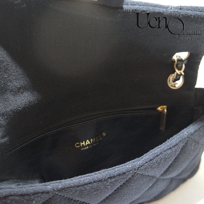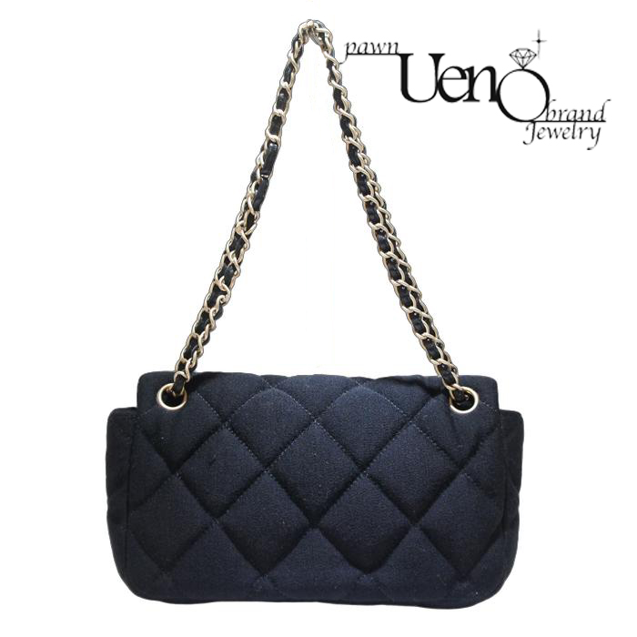 ■11/13神戸新聞掲載■【CHANEL シャネル】チェーンショルダーバッグ マトラッセ コットンジャージ (黒×ゴールド金具)
