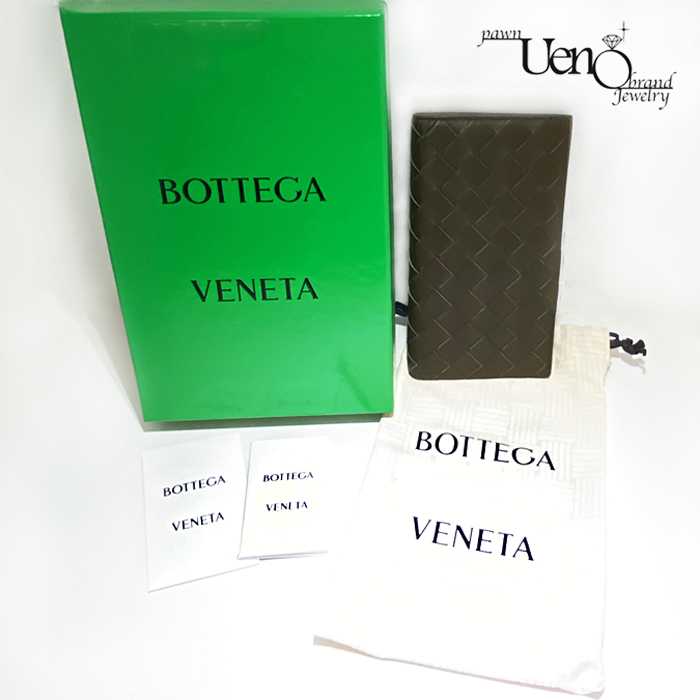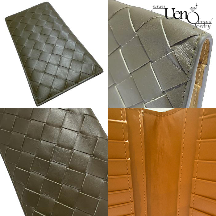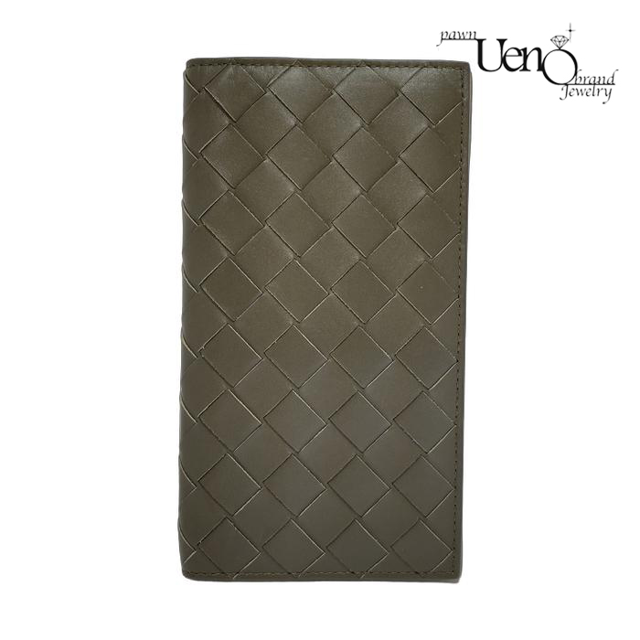 BOTTEGA VENETA ボッテガヴェネタ イントレチャート スリムロングウォレット(カーキ×中ベージュ系) 長財布