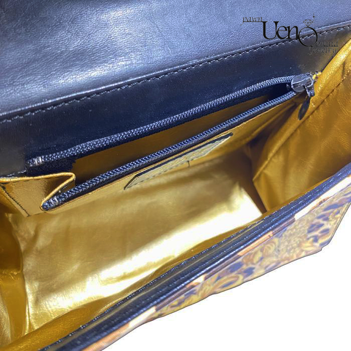GIANNI VERSACE ジャンニヴェルサーチ レオパード柄ショルダー付きハンドバッグ(黄×黒)