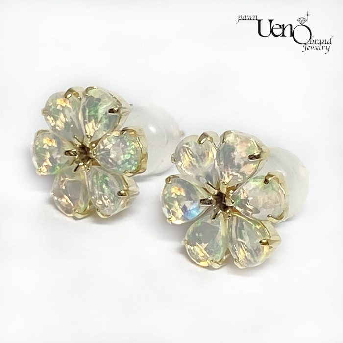 【質屋】送料無料!K10 オパール フラワーモチーフ ピアス